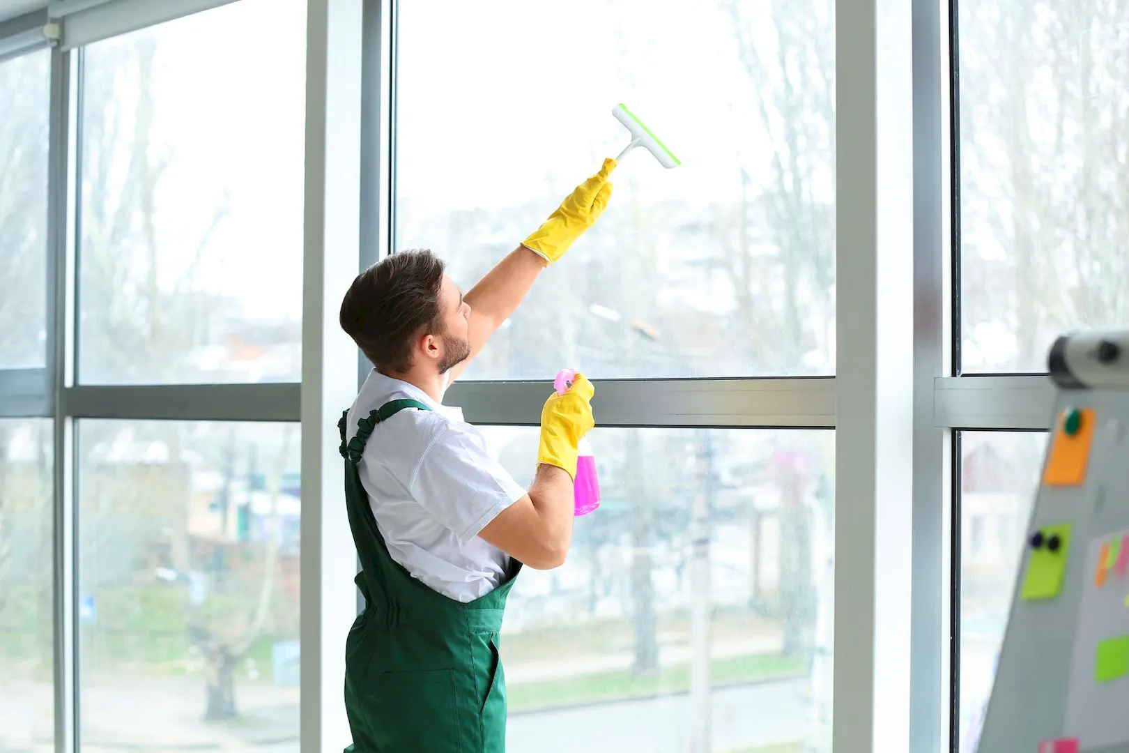 Мытье окон в офисе предоставляет возможность сосредоточиться на работе, не отвлекаясь на бытовые заботы.